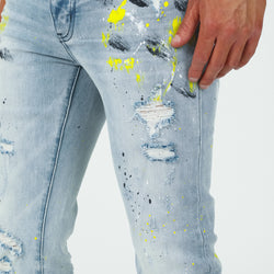 CHI-2 Yellow Spatter Paint Denim Pant.