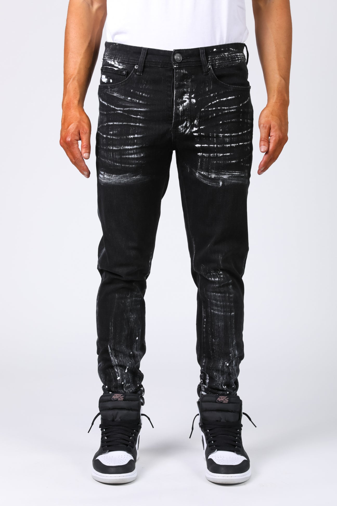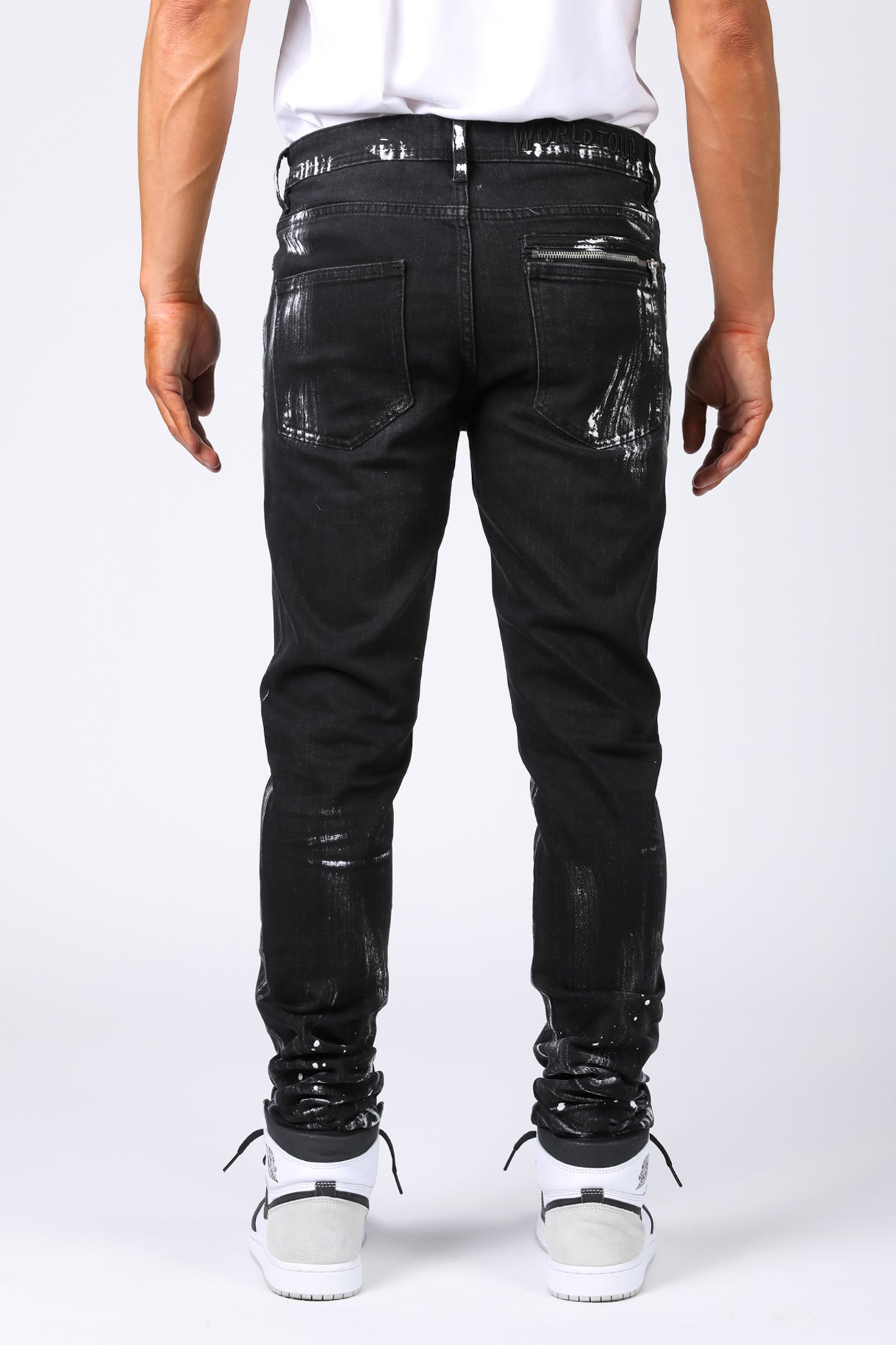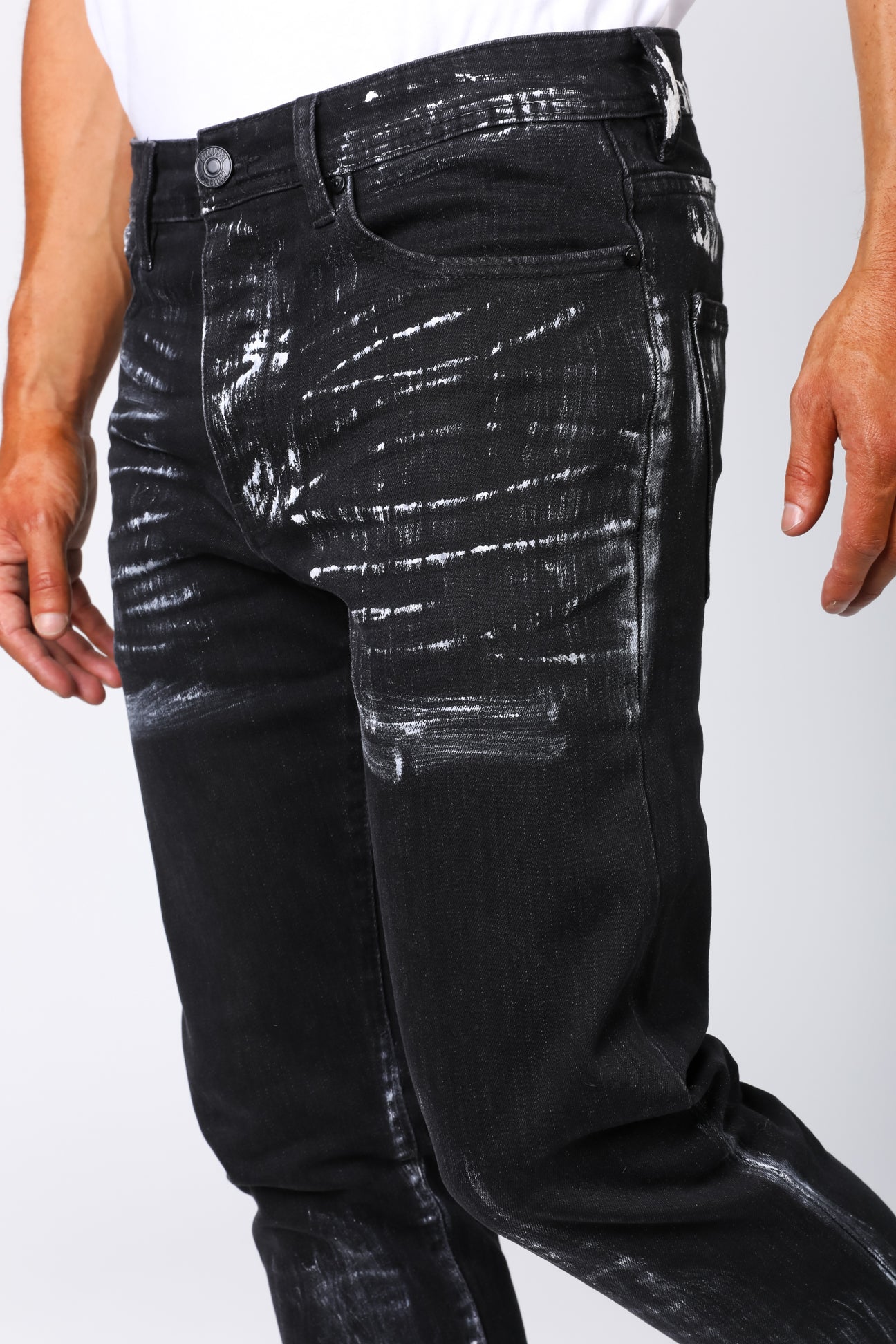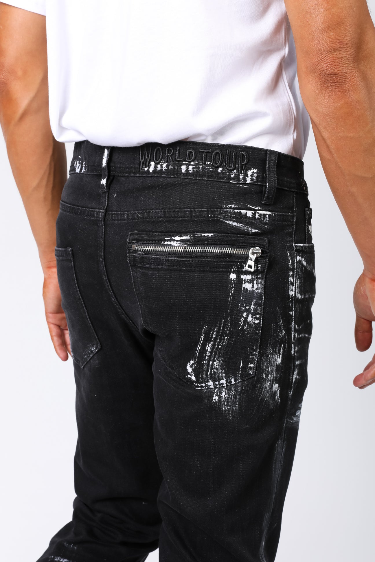 World Tour Black Grenada Denim Pant With Paint Detail.